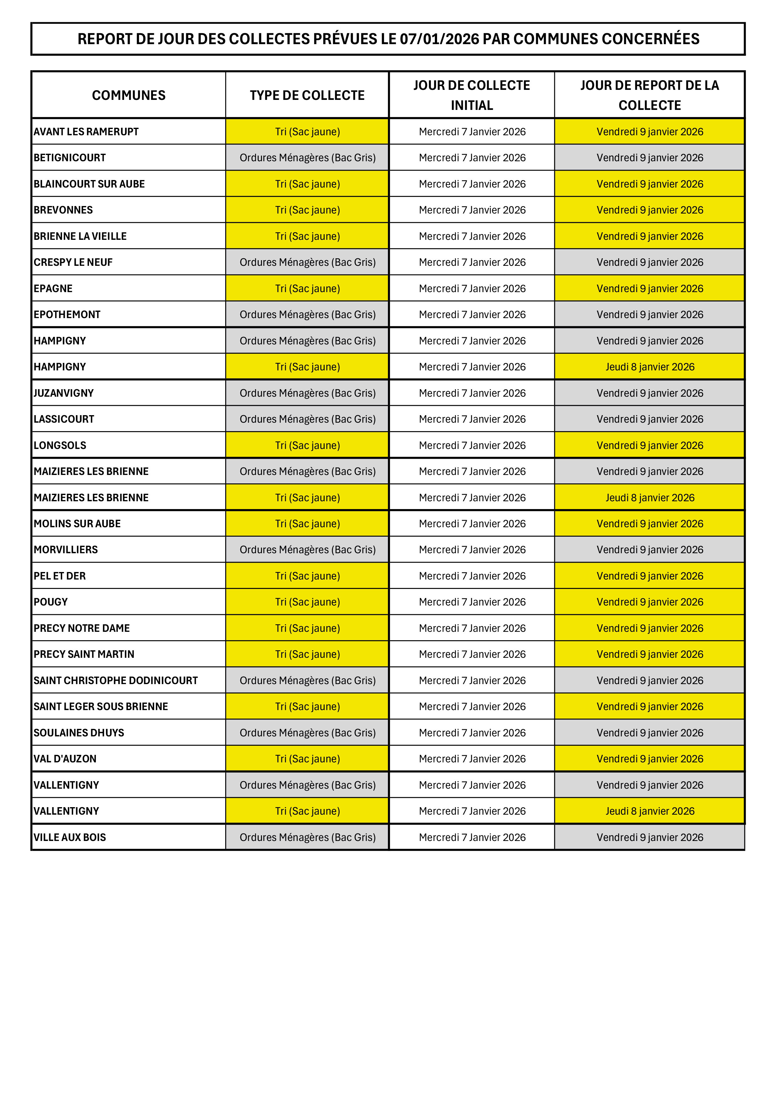 ⚠️Date des reports des collectes prévues ce jour pour les communes concernées !